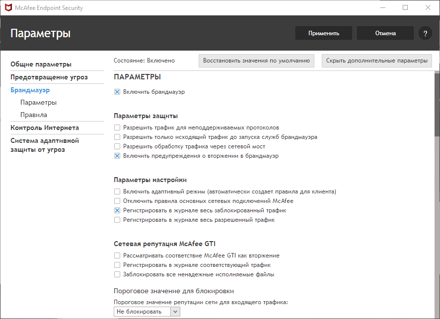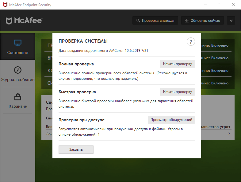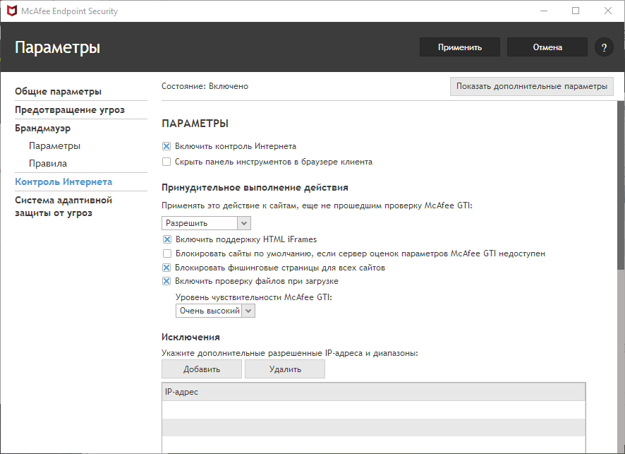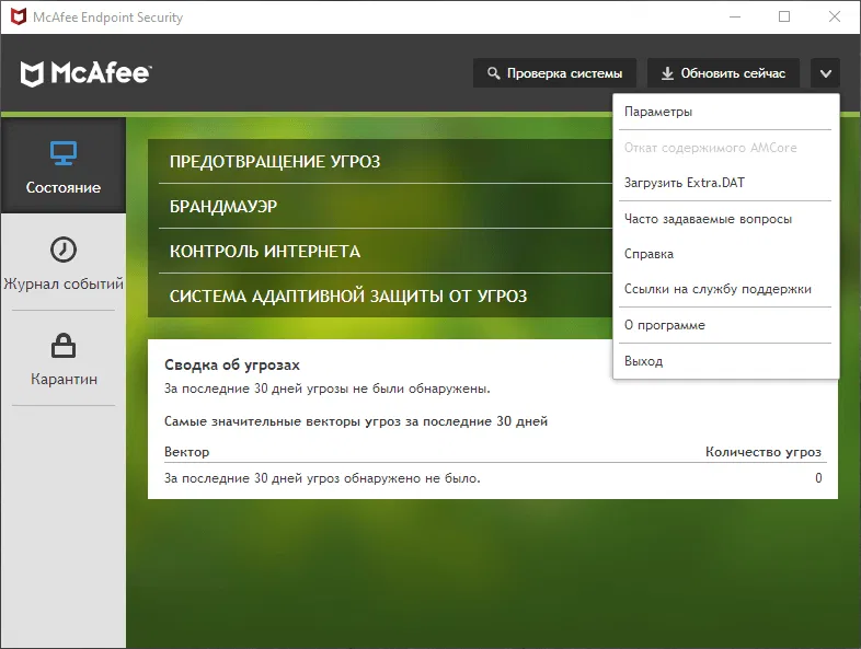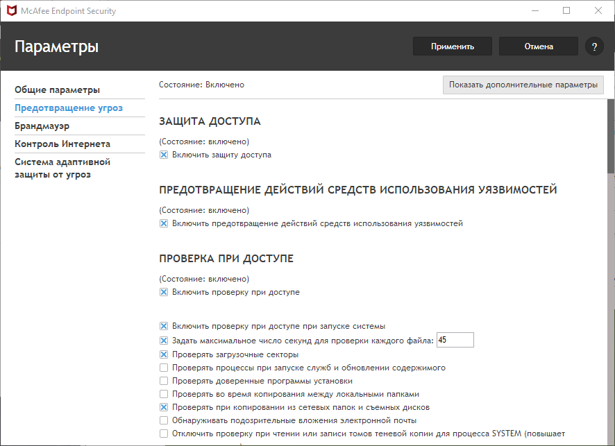 Скриншоты McAfee Endpoint Security