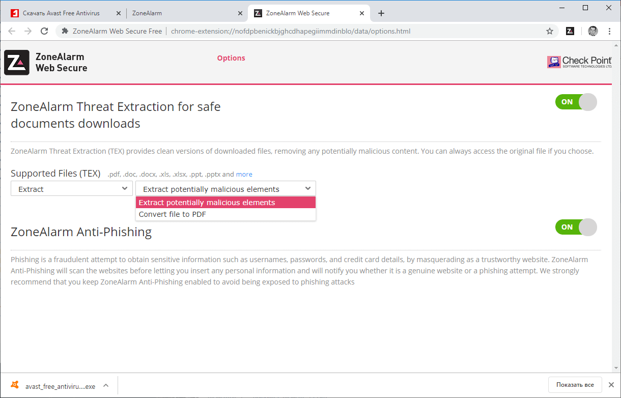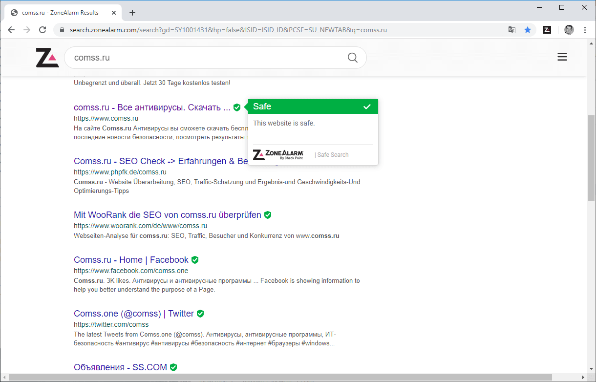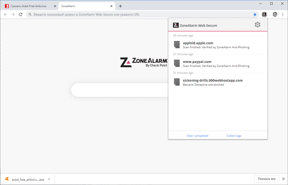 Скриншоты ZoneAlarm Web Secure Free