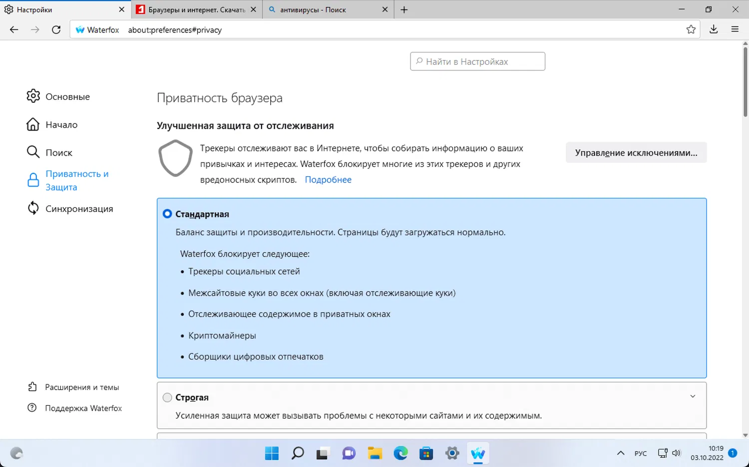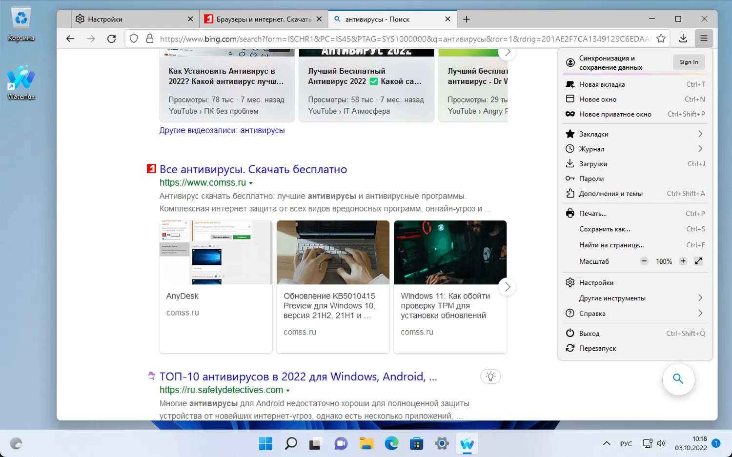 Скриншоты Waterfox