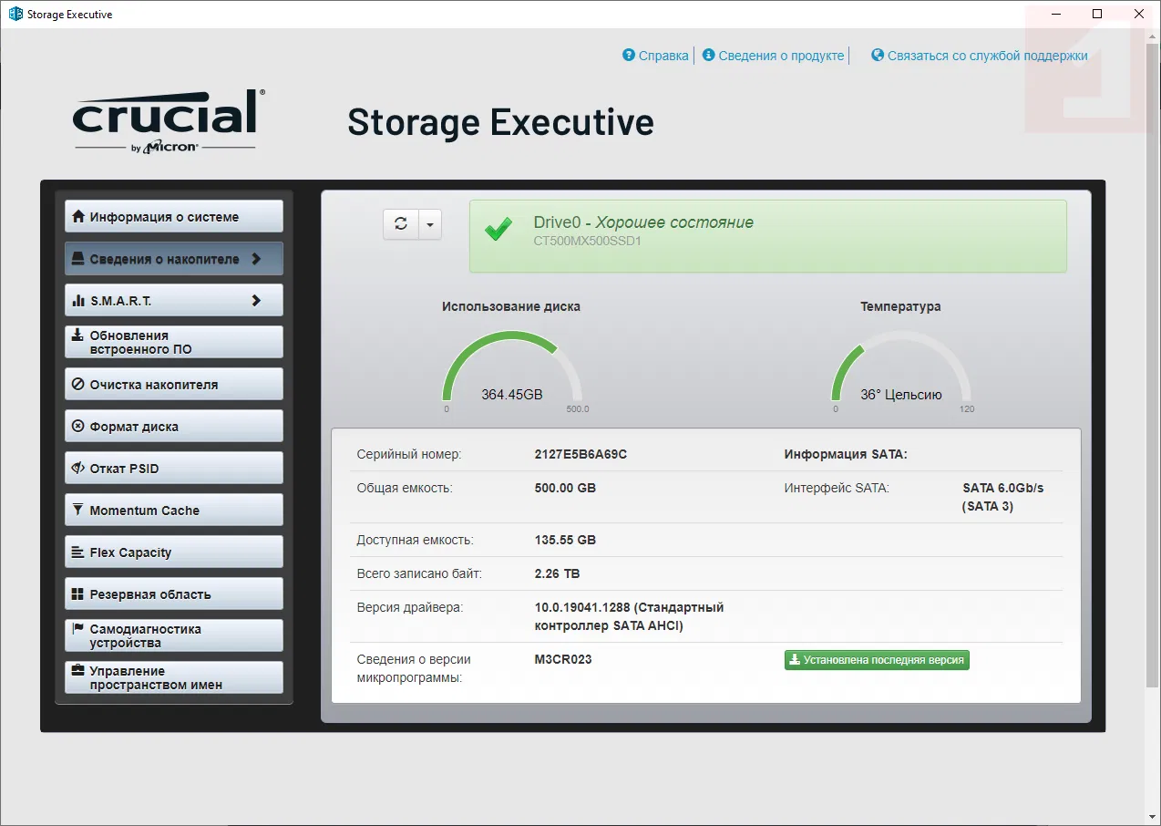 Скриншоты Crucial Storage Executive
