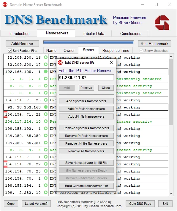 Скриншоты DNS Benchmark