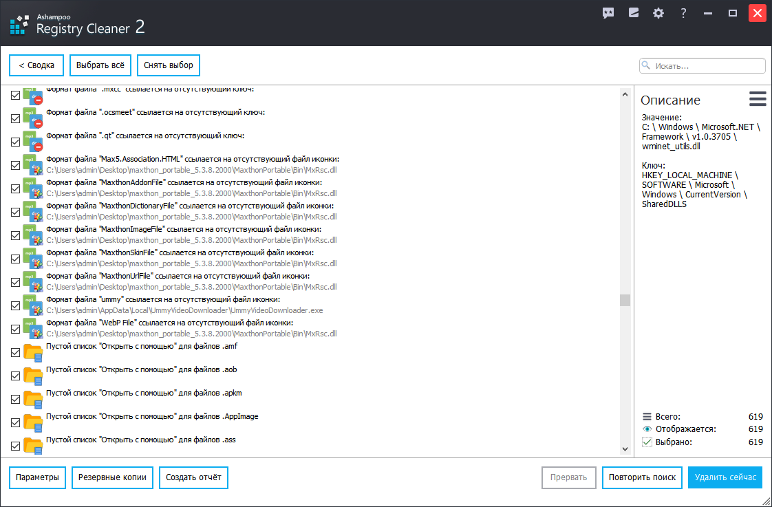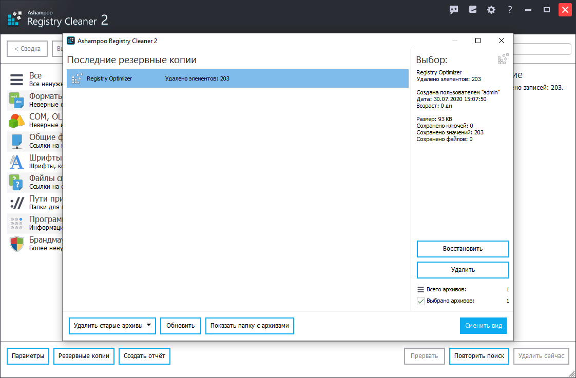 Скриншоты Ashampoo Registry Cleaner