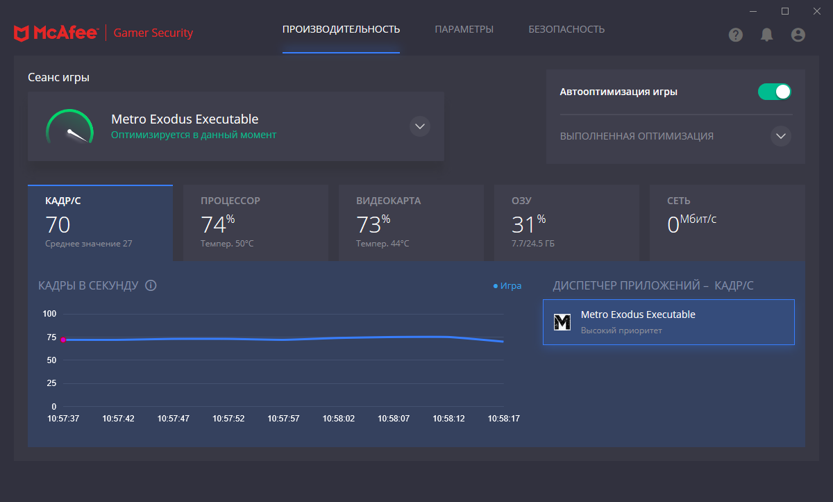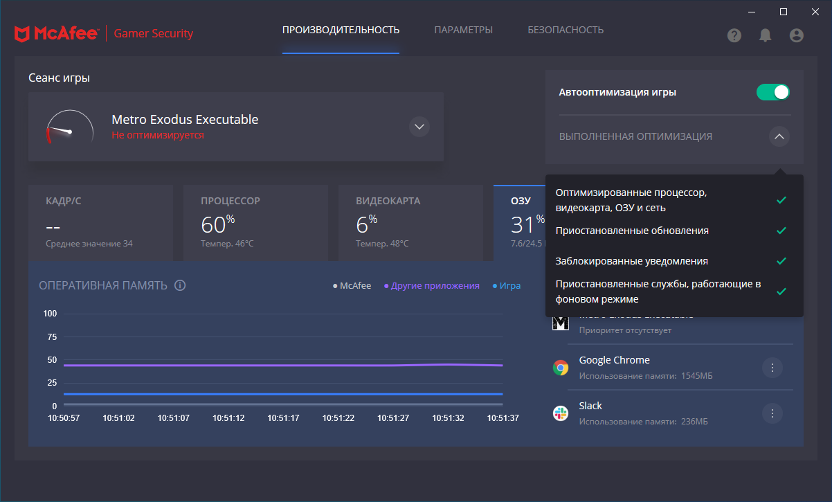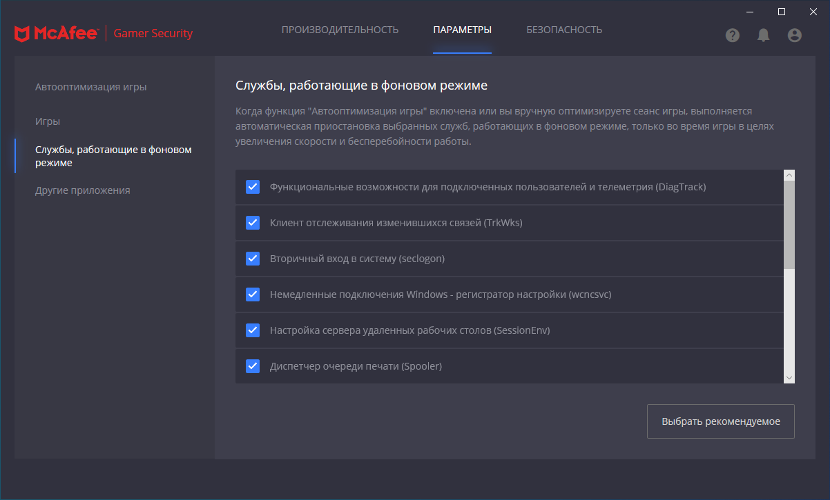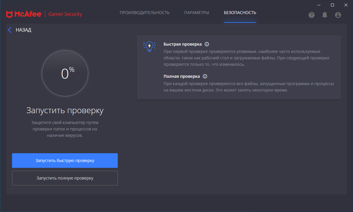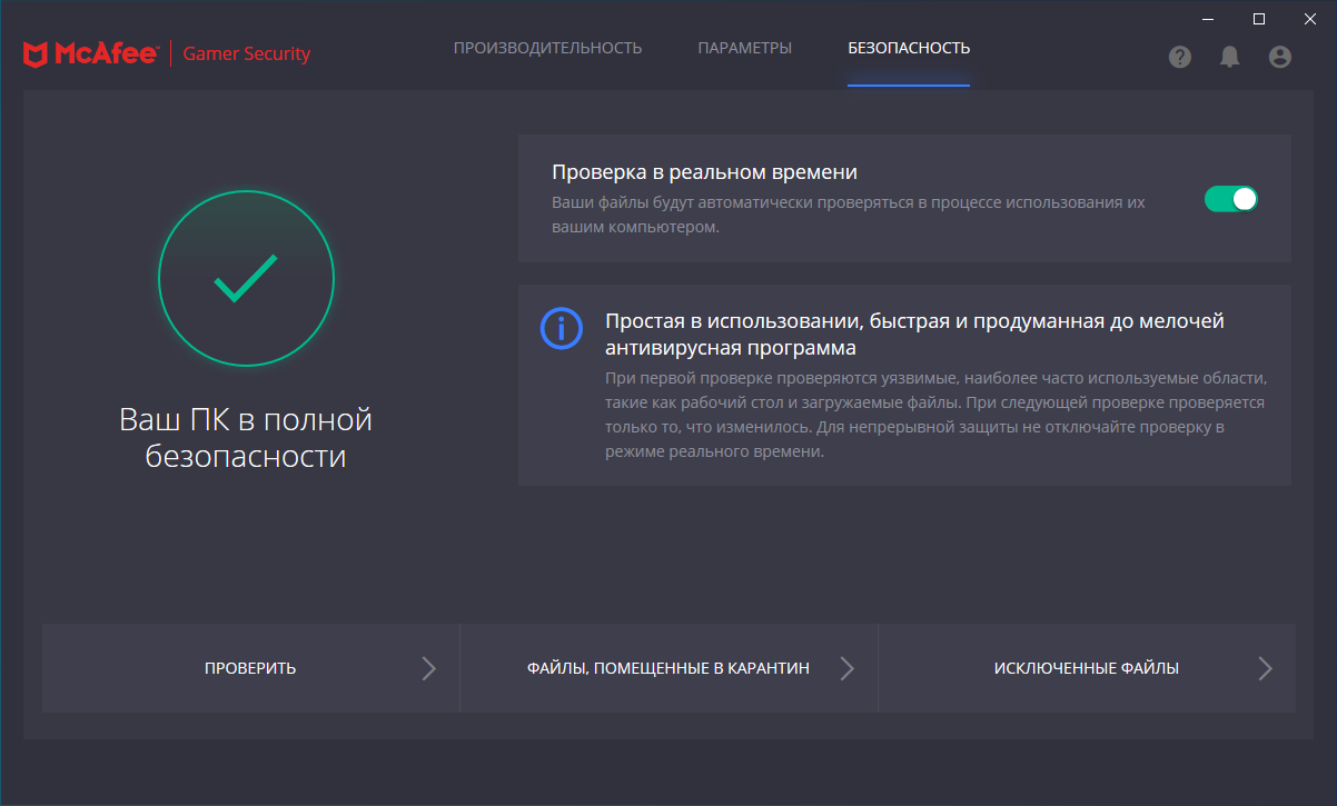 Скриншоты McAfee Gamer Security