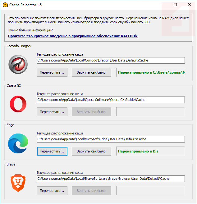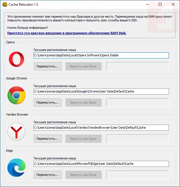 Скриншоты SoftPerfect Cache Relocator