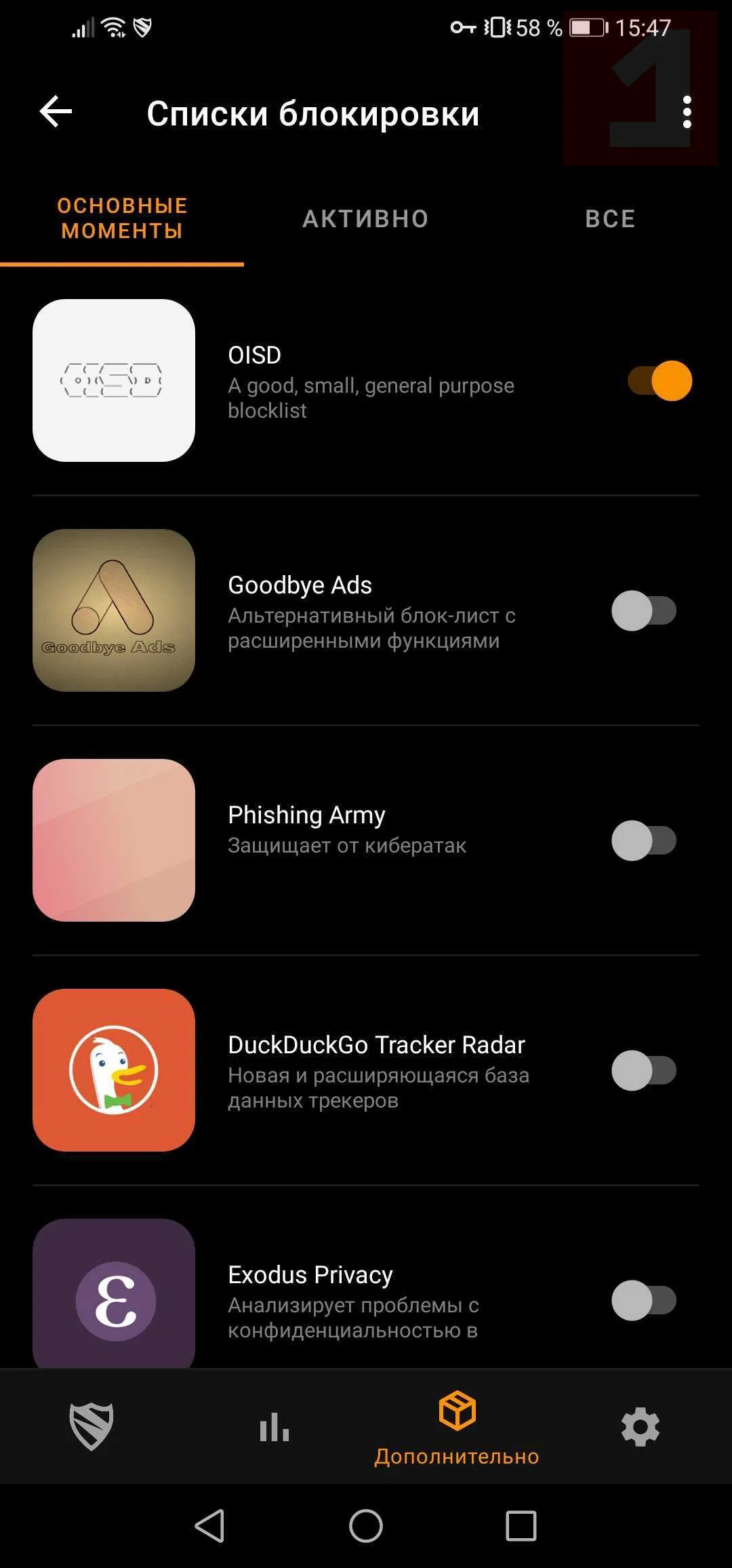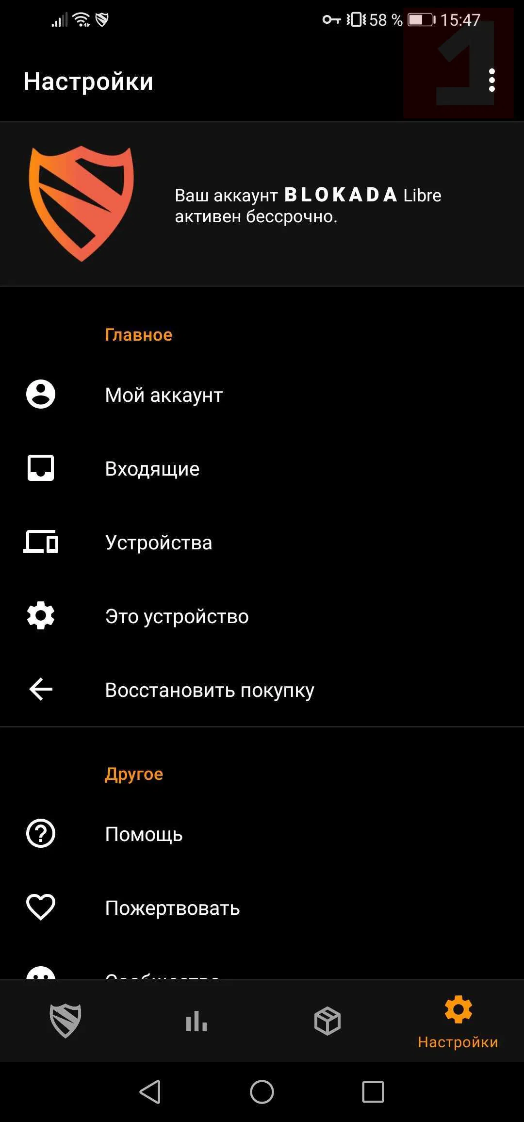 Скриншоты Blokada для Android